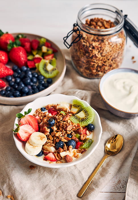 1. Iogurte natural com frutas e granola